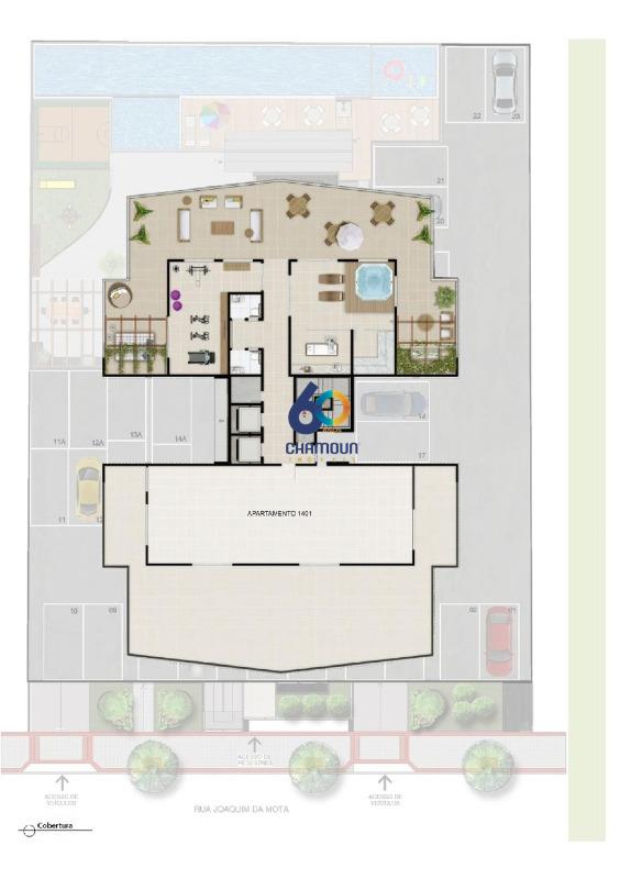 Piscina adulto e infantil, solarium, deck molhado, salão de festas, espaço gourmet, churrasqueira, forno de pizza, jardim, sala de jogos, playground e área de basquete.