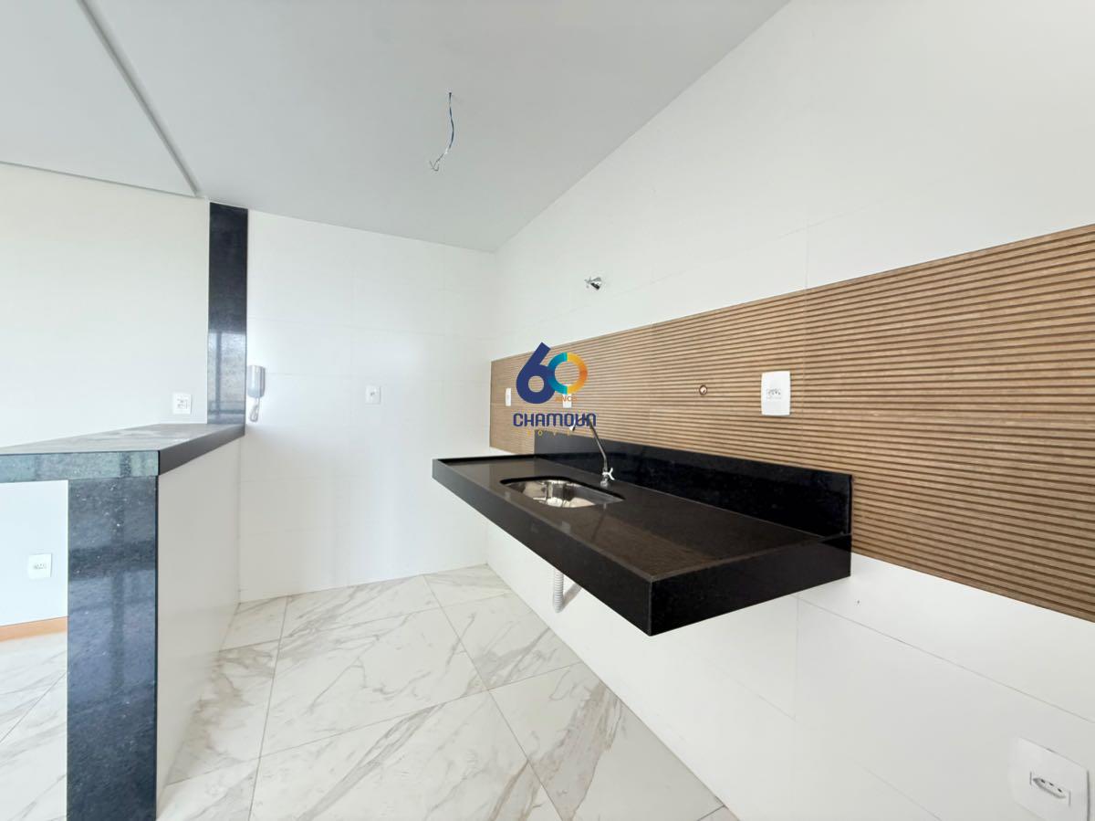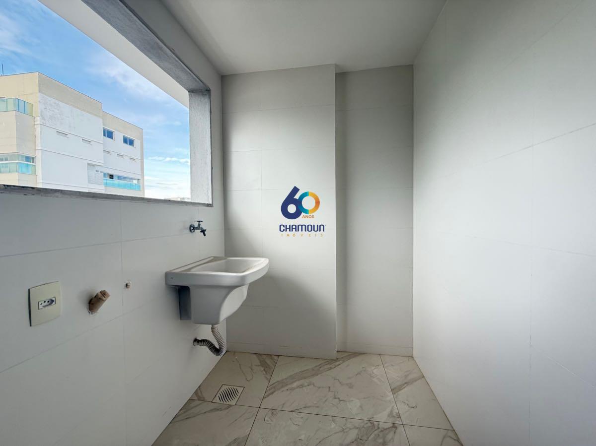 A cozinha ampla e bem distribuída assegura praticidade no preparo das refeições, enquanto o banheiro social atende com elegância às áreas comuns. A área de serviço é estrategicamente posicionada, garantindo organização e discrição.