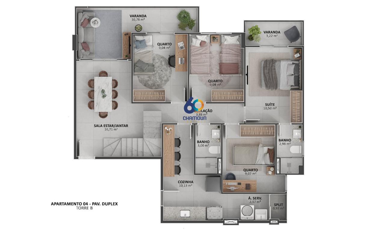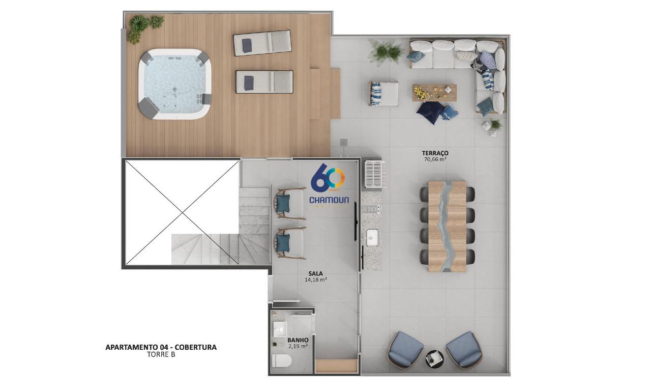 Cobertura duplex com 194,18 m², 4 quartos, suíte, 3 vagas, 100 metros do mar.