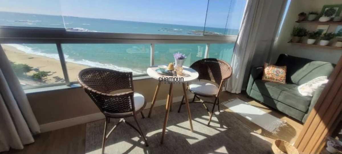 Apartamento pronto para morar, com uma vista panorâmica de tirar o fôlego. São 2 quartos, sendo 1 suíte, andar alto, de frente para o mar, com sol da manhã. Totalmente montado e decorado, conta com varanda com fechamento em vidro e vista privilegiada do mar azul.
