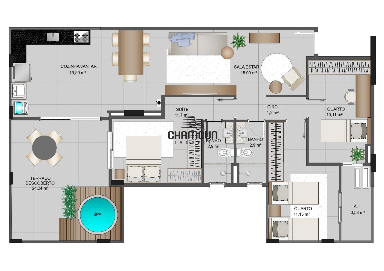02 Coberturas com 02 quartos e 01 suíte