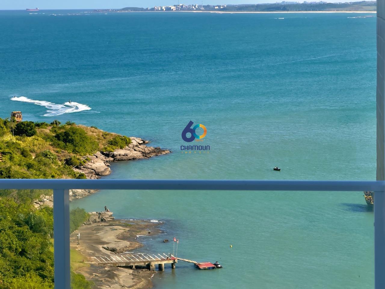 Apartamento em Guarapari com 3 quartos sendo um suíte com vista pro mar, empreendimento de frente para o mar na Praia da Cerca, com vista para Praia do Morro e Morro da Pescaria.