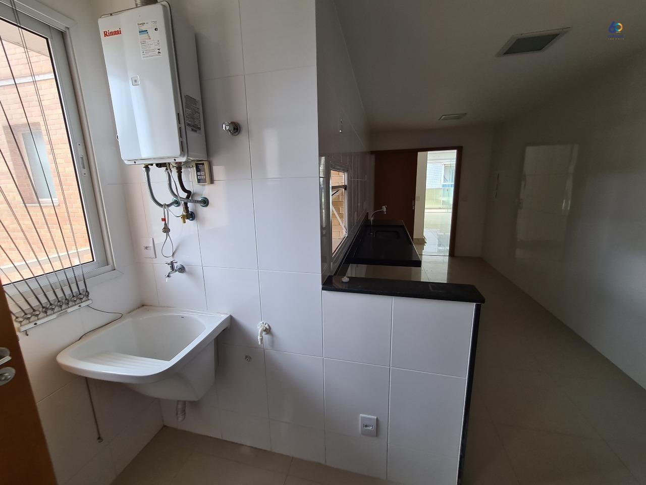 Apartamento novo com sala ampla e varanda ampla, cozinha, área de serviço, banheiros com blindex e espelhos.