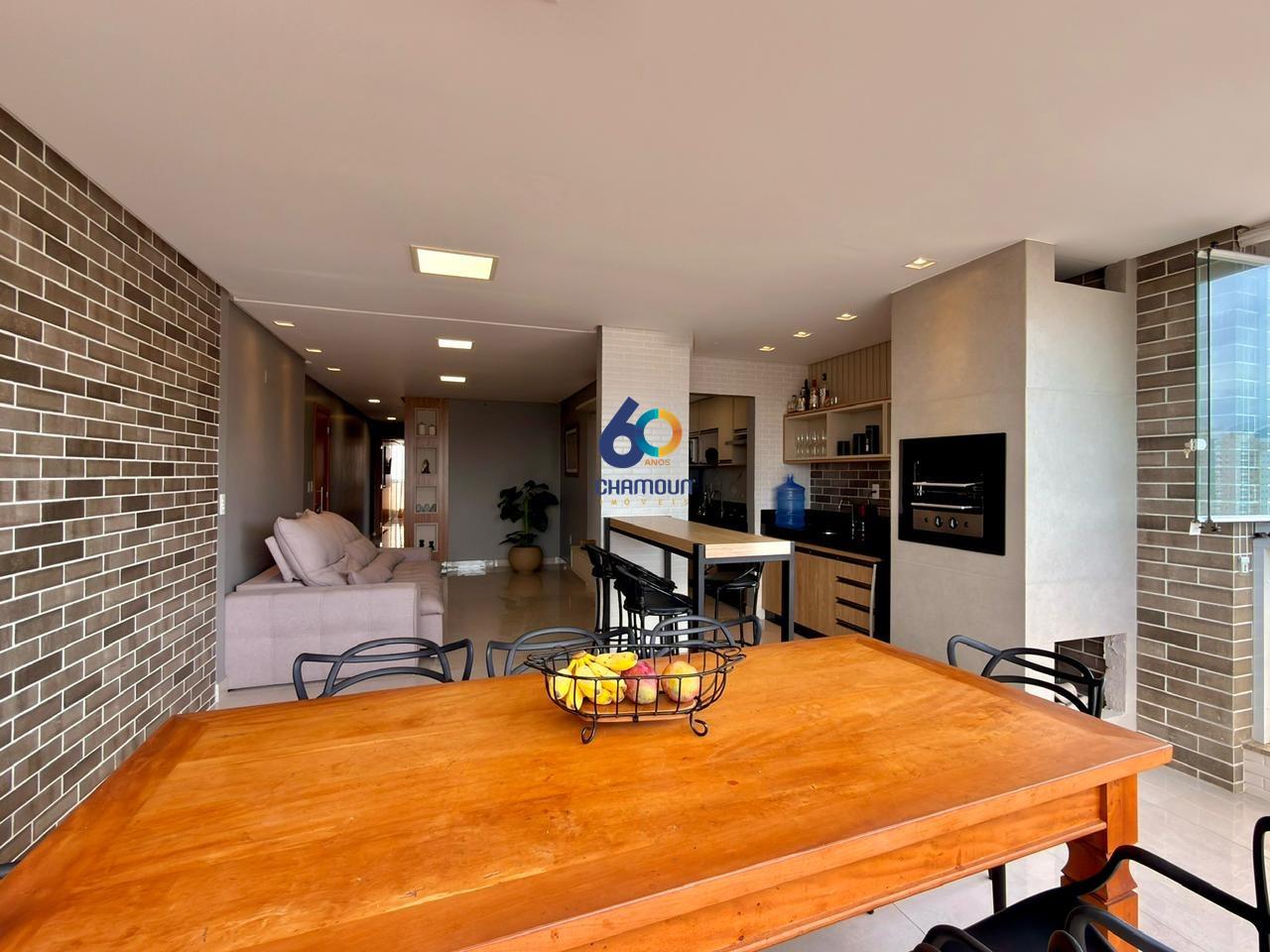 Sala espaçosa conjugada com varanda gourmet e cozinha. possuímos televisão na suíte, quarto de casal e sala, além de wifi disponível e mesa na varanda gourmet para 8 lugares.