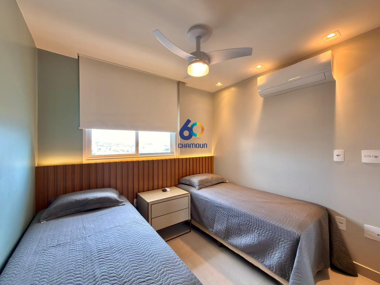 O apartamento possui 3 quartos. Uma suíte com cama Queen, um quarto com cama de casal, e outro com duas camas de solteiro. A suíte e quarto casal dispõem de Ar condicionado e ventiladores. Na sala possuímos sofá cama para acomodar duas pessoas.