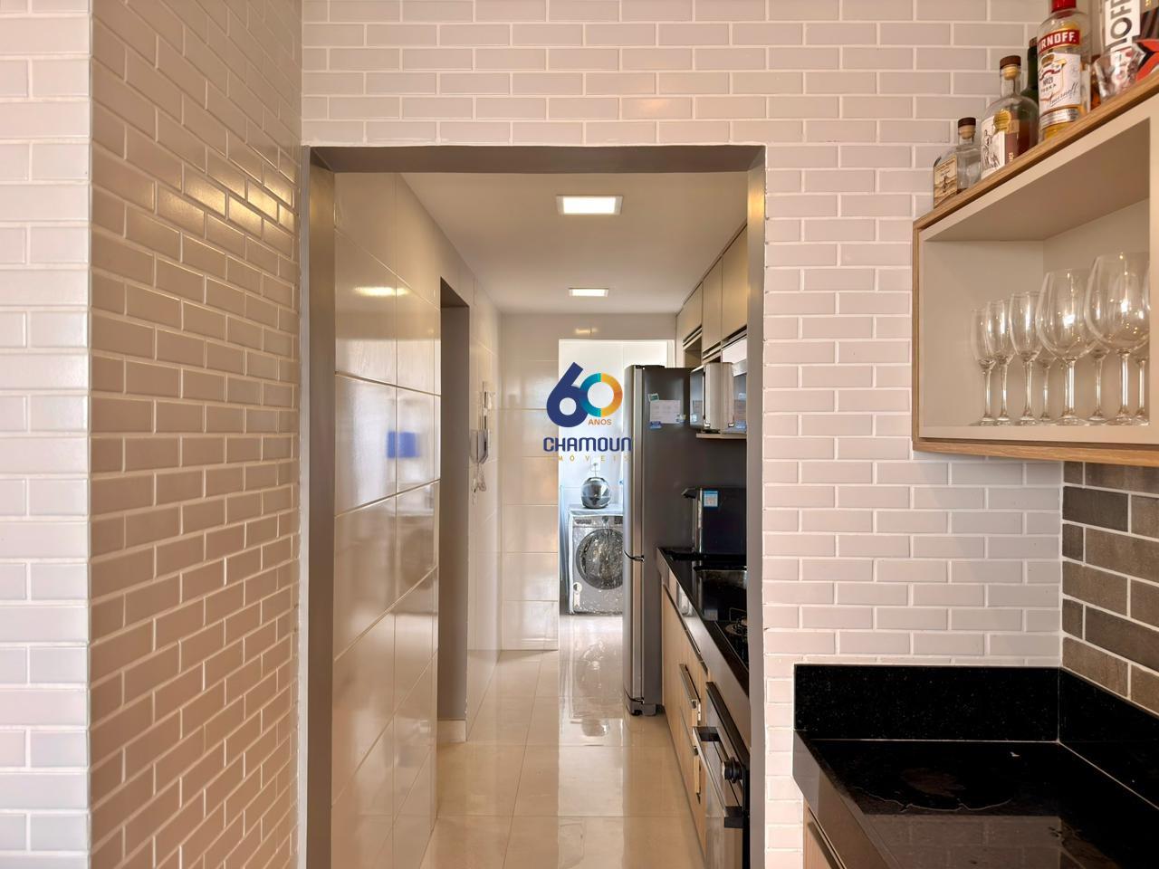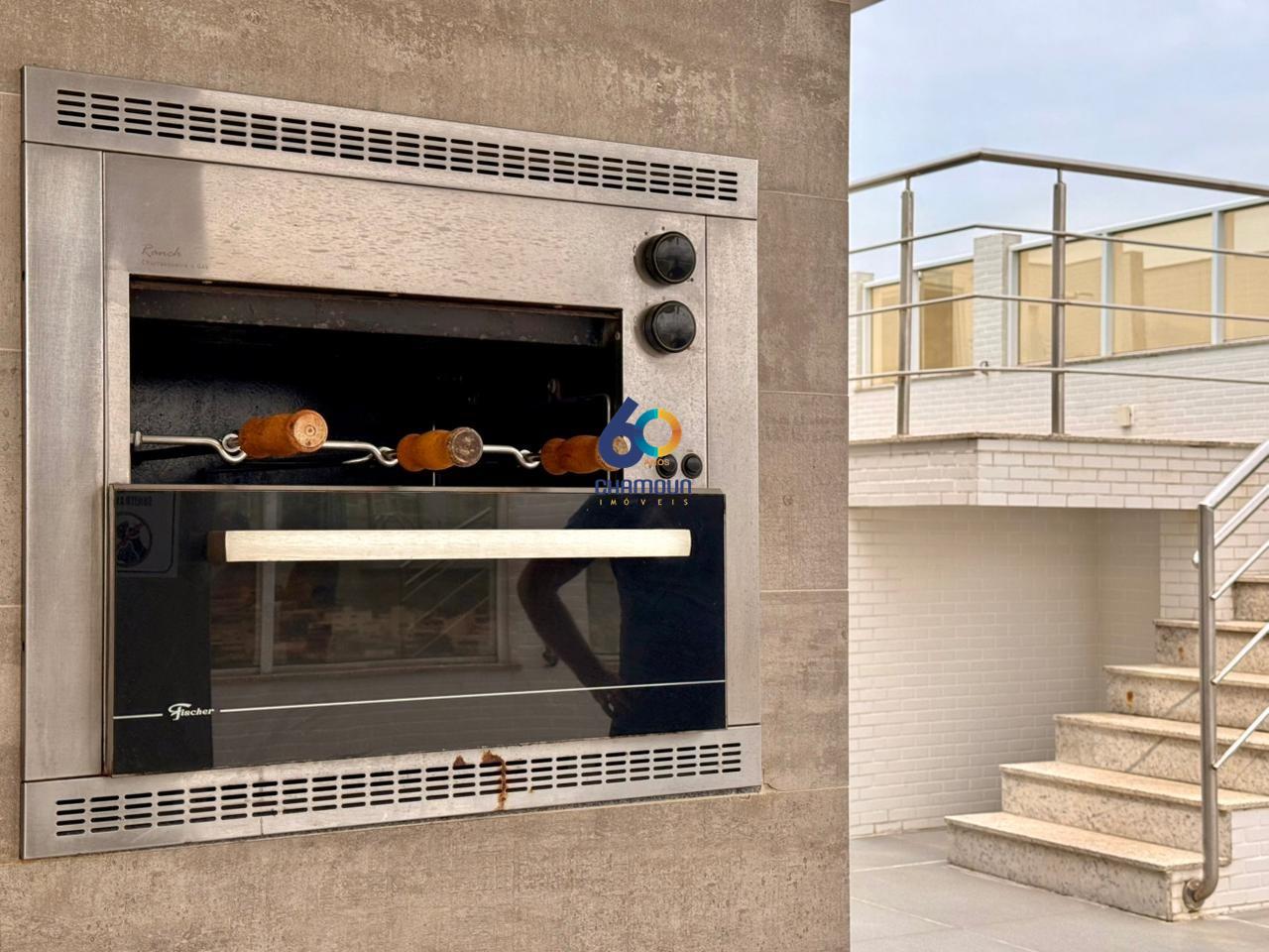 Cozinha, dispõe de Geladeira Duplex, Purificador água, Microondas, Sanduicheira, fogão, forno elétrico e Maquina de lavar roupa, na área de serviços. Na área gourmet temos churrasqueira, cervejeira.