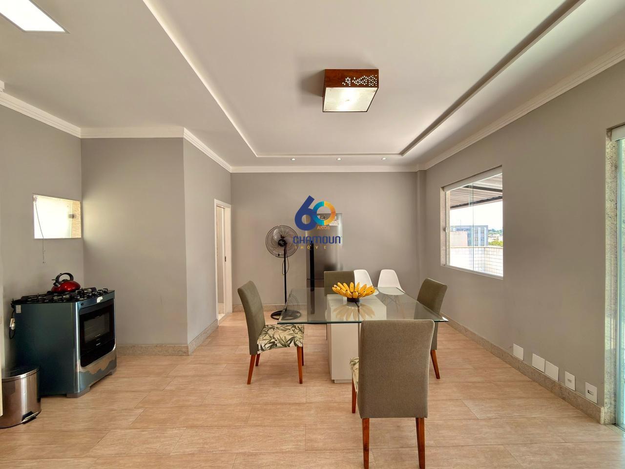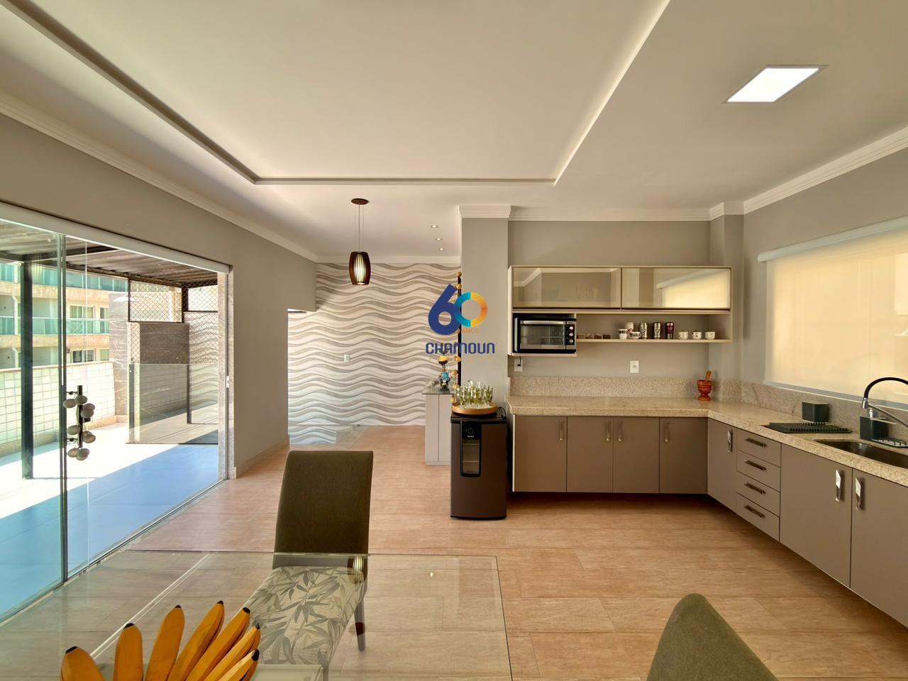 Com 3 quartos, sendo duas suítes, a cobertura conta ainda com sala, cozinha, banheiro social, lavabo, além do pavimento superior com uma ampla área gourmet com churrasqueira, banheiro e área de serviço.