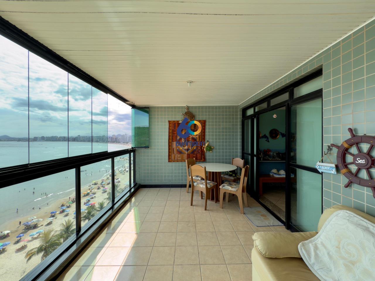 Venda de cobertura frente ao mar em Guarapari (Praia do Morro). Imóvel com 271 m² de área interna, 4 quartos (2 suítes), 2 salas, 5 banheiros e 3 varandas, excelente acabamento e iluminação natural. Possui 2 elevadores, posição de frente, 8º andar, vista mar permanente e panorâmica e 3 varandas para aproveitar a brisa. Com área privativa, escritório, despensa, closet, DCE, lavabo, armários em quartos, cozinha e banheiros, além de mobiliado e climatizado. Infraestrutura completa: água individual, circuito de TV, gás canalizado, interfone, portão eletrônico, portaria digital, piscina, sala de jogos, sala de festas, churrasqueira, sauna e espaço gourmet. Localizada em Guarapari, ES, Bairro Praia do Morro. Valor de venda: R$ 3.500.000,00. Condomínio R$ 1.500, IPTU anual R$ 3.700. Aproveite a oportunidade de morar com conforto, lazer e segurança em uma das regiões mais valorizadas da cidade, com serviços de alto padrão e acabamento premium!