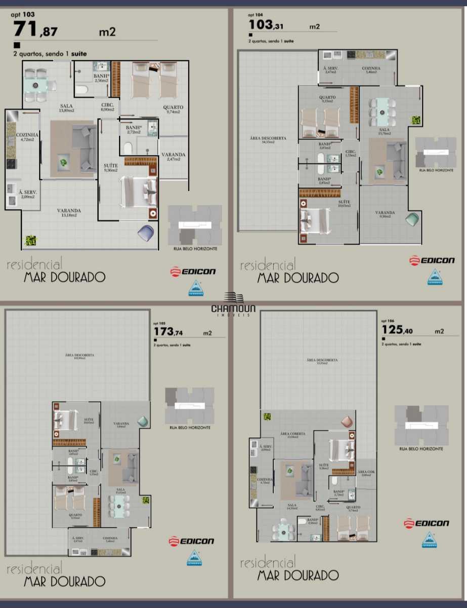 Compostos por 2 quartos sendo 1 suíte e 2 vaga de garagem