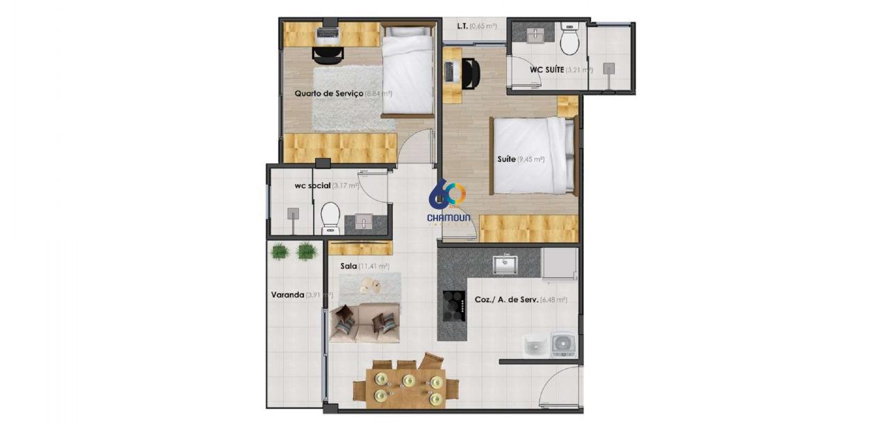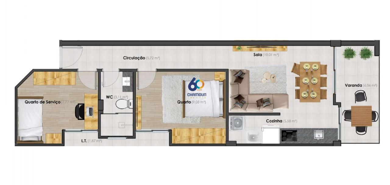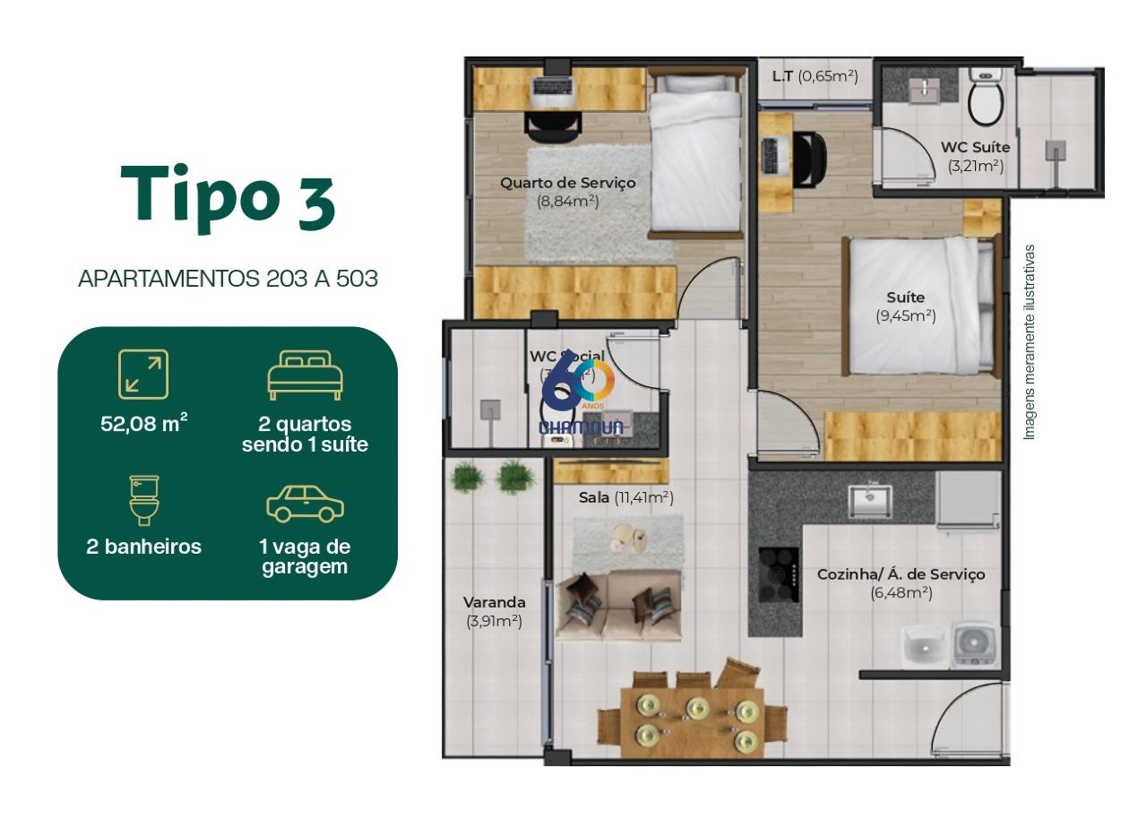 Com 2 quartos, sendo 1 suíte, 2 banheiros, 1 vaga de garagem e uma área total de 52,03 m², este apartamento é perfeito para quem busca praticidade e qualidade de vida.