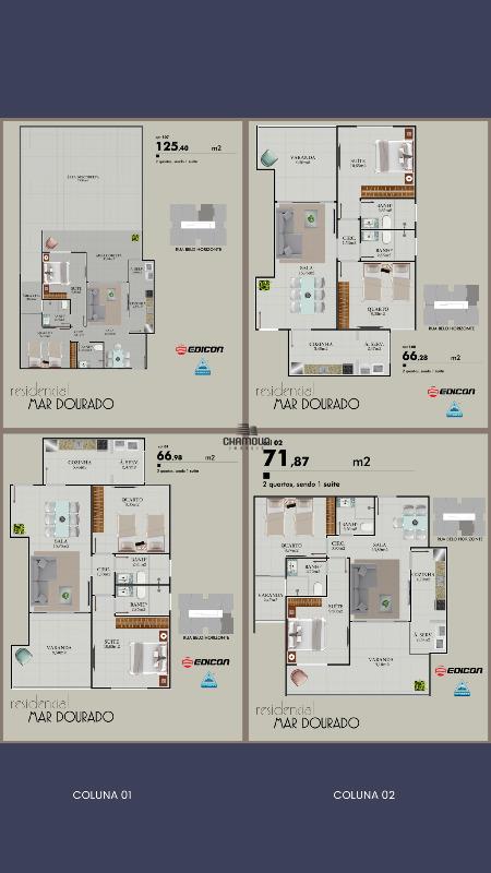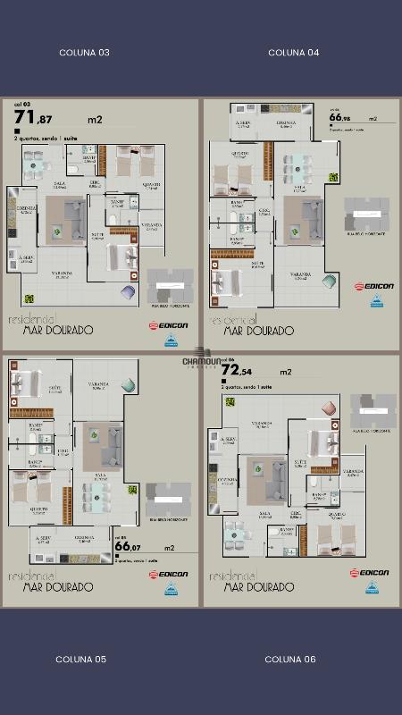 Medindo entre 71,87m² de área útil