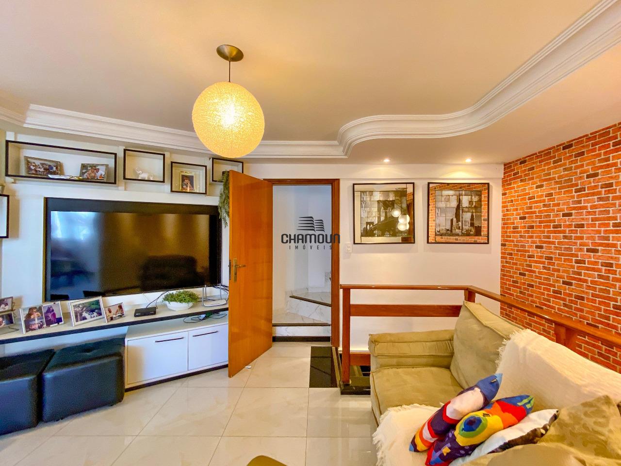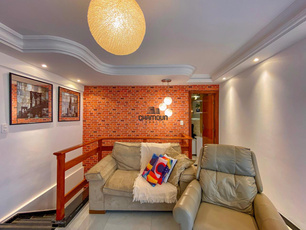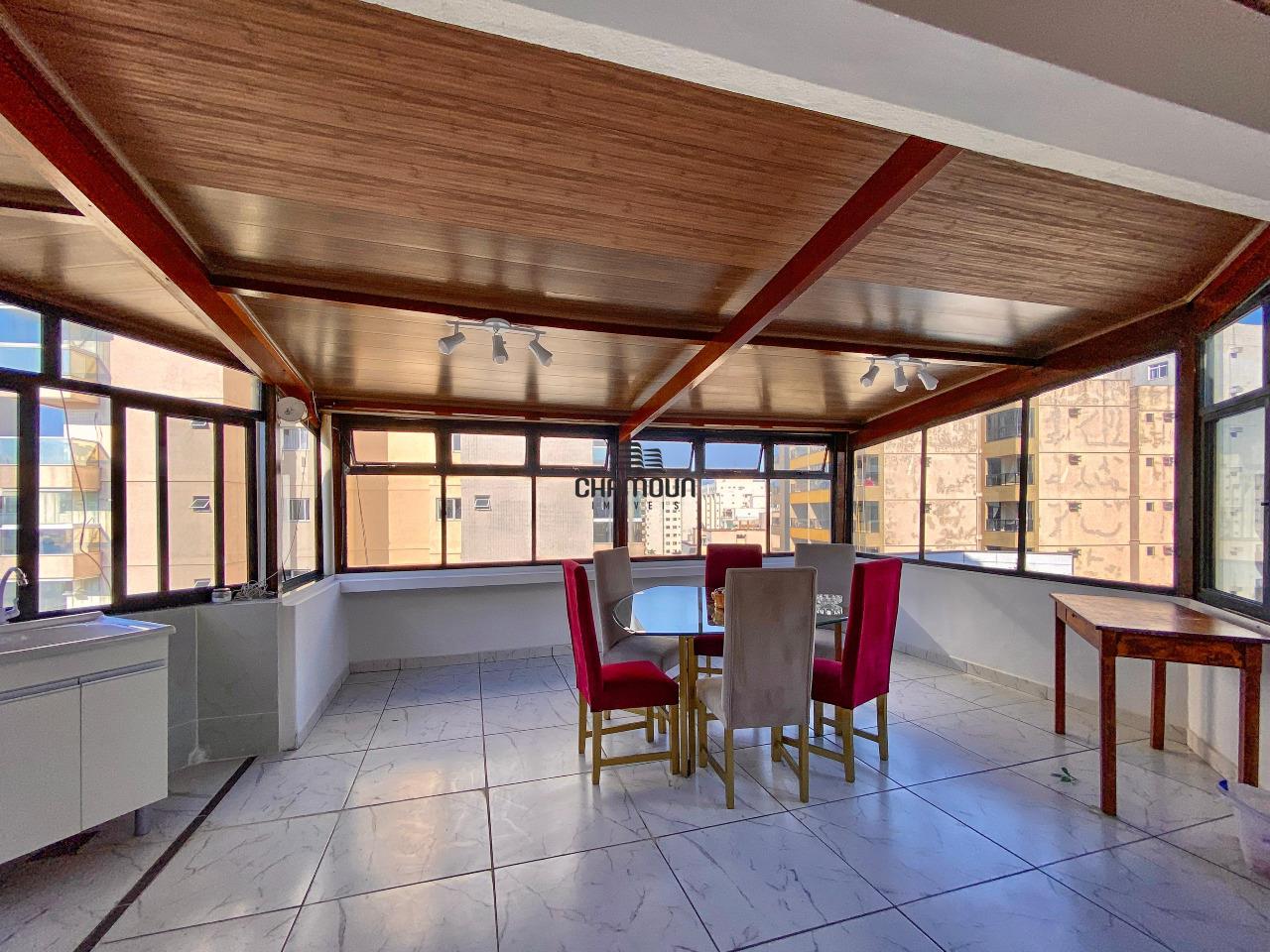 Cobertura triplex composta no 1 andar por 3 quartos sendo 1 Closet e 1 suíte, cozinha com ilha e armários planejados, sala de jantar interligada com sala de estar e varanda ampla, no segundo andar vamos ter uma segunda sala de estar interligada com a área gourmet com churrasqueira, piscina, sauna, lavabo e 1 suíte, no 3 andar vamos ter uma ampla varanda com área de serviço, e 1 suíte.